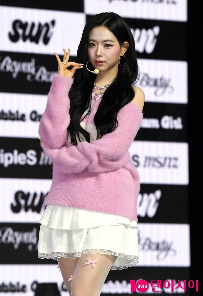 걸그룹 트리플에스(tripleS) 선 김채연이 24일 서울 용산구 블루스퀘어에서 열린 새로운 디멘션 미소녀즈(msnz)의 앨범 'Beyond Beauty' 쇼케이스에 참석하고 있다.