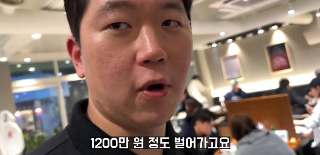저는 이 고깃집 매장에서 1,200만 원 정도 벌어가고요. 거기서 n분의 1로 해서 600만 원 정도 가져가고요. 아까 이자카야에서는 1인당 400~500만 원 정도 수익이 나고 있습니다.