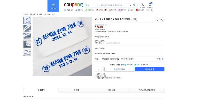 30수 윤석열 탄핵 기념 맞춤 수건 포장박스 (2매) - 수건 | 쿠팡