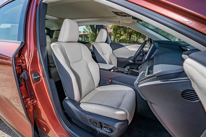 앞좌석 편의성은 의외로 450h+가 더 좋다. 가령, 시트에 세미 아닐린 가죽을 씌우고(500h는 천연가죽), 전동 조절은 450h+가 10방향, 500h가 8방향을 지원한다. 요추받침 또한 450h+는 4방향, 500h는 앞뒤 2방향만 가능하다. 메모리 시트 역시 450h+는 1열 동반석까지 있는 반면, 500h는 운전석만 있다. 다만, 500h의 시트 가장자리엔 승객의 흔들림을 억제하는 스웨이드 소재가 들어가, 굽잇길에서 안정감을 높인다.
