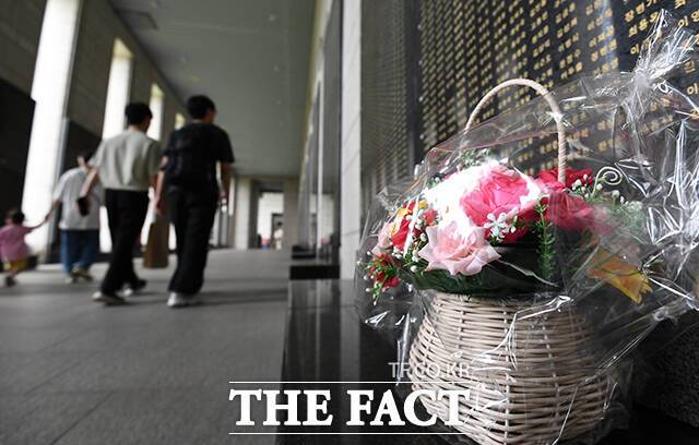 [더팩트ㅣ서예원 기자] 6.25 전쟁 74주년을 맞은 25일 오후 서울 용산구 전쟁기념관에서 시민들이 전사자 명비를 살펴보고 있다.