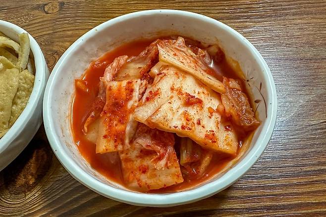 반찬으로는 어묵조림과 김치가 나오는데 이 김치가 이북식 김치라고 한다. 직접 담근다고 하니 믿고 드실만한 김치다. 그런데 어묵조림은 이북만두를 파는 곳으로는 조금 생뚱맞은 느낌이었다. 잠시 후 이북만두가 나왔다. 만두는 총 5개가 들어 있다. 국물은 맑은 육수 베이스.