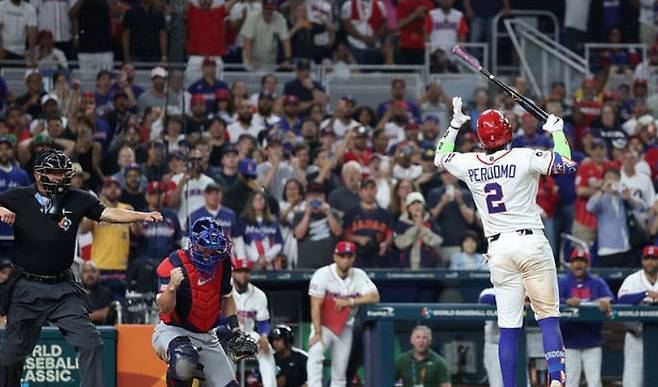 이날 경기는 9회말 2사 3루, 동점 주자가 홈을 노리는 절체절명의 상황에서 허무하게 끝났습니다. 미국의 마무리 메이슨 밀러가 던진 8구째 슬라이더는 MLB 투구 분석 시스템 '스탯캐스트'상으로도 스트라이크 존을 한참 벗어난 낮은 공이었습니다. 타자 헤랄도 페르도모는 확신을 가지고 배트를 멈췄으나, 코리 블레이저 구심의 손은 무정하게도 하늘을 찔렀습니다.