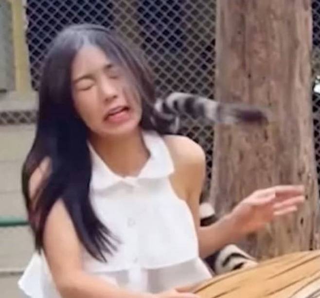 여성은 호랑이가 휘두른 꼬리에 그만 얼굴을 맞고 말았고 당혹스러움을 감추지 못했는데요. 호랑이의 꼬리에 얼굴 맞자 창백해진 여성의 얼굴.