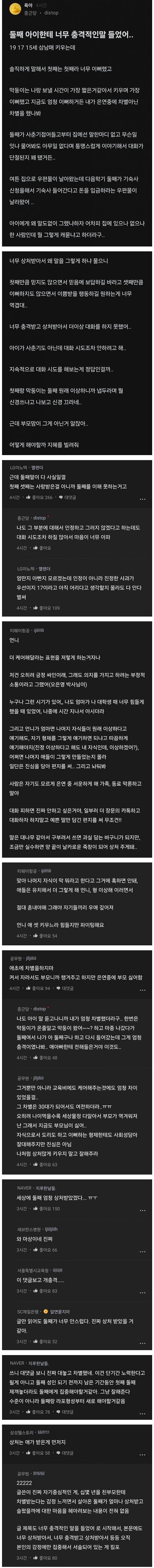둘째 아이한테 너무 충격적인 말을 들은 엄마