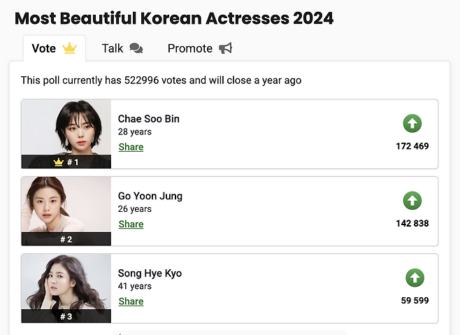 '가장 아름다운 한국 여배우' 1위