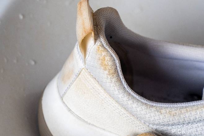 얼룩이 바로 지워지지 않는다면, 부드러운 칫솔이나 수세미로 가볍게 문질러줘도 좋다. 무리하게 문지르면 신발 소재가 상할 수 있으니 살살 닦는 게 좋다.