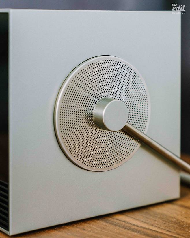 시네빔 큐브의 외관은 오묘한 은빛이다. 거기에 은은한 광택과 샤프한 직선 형태가 더해져 여느 오브제 컬렉션 못지않은 세련미를 뽐내는 동시에 오래된 라디오나 영사기가 생각나는 레트로한 감성까지 갖췄다.