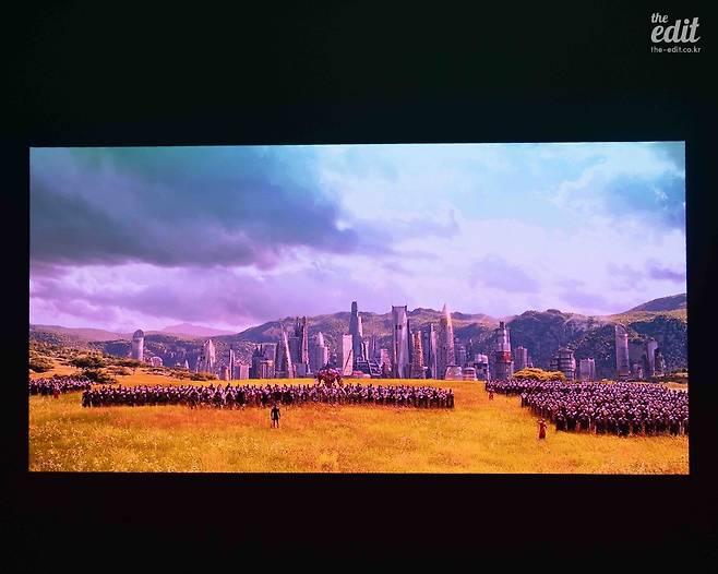 실제로 시네빔 큐브가 사무실에 도착한 오후 네 시쯤, 테스트를 위해 기대 없이 스튜디오의 흰 벽에 투사했을 때 빛을 완전히 차단하지 않았음에도 봐줄 만한 밝기를 구현했다. <어벤져스: 인피니티 워>의 와칸다 전투 장면을 4K로 감상했는데, 개미 떼 같은 전사들이 뭉개지는 현상 없이 깨끗한 화질로 표현됐다.