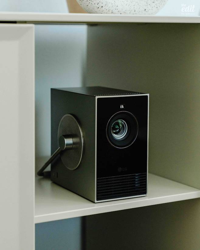 안녕! 에디터 유정이다. 디에디트 사무실에 택배가 도착했다. 바로 오늘 리뷰의 주인공, LG ‘시네빔 큐브‘(https://www.lge.co.kr/projectors/hu710pb). 사실 나는 지금껏 빔프로젝터를 갖고 싶다는 생각을 한 적이 단 한 번도 없다. 아니, 애초에 관심을 가져본 적도 없었다. ‘빔프로젝터가 왜 필요하지? TV나 모니터를 사면 되잖아?’라고 생각했으니까. 투박하고 못생긴 기계를 내 방에 들여 인테리어를 망치기 싫은 이유도 한몫했다.