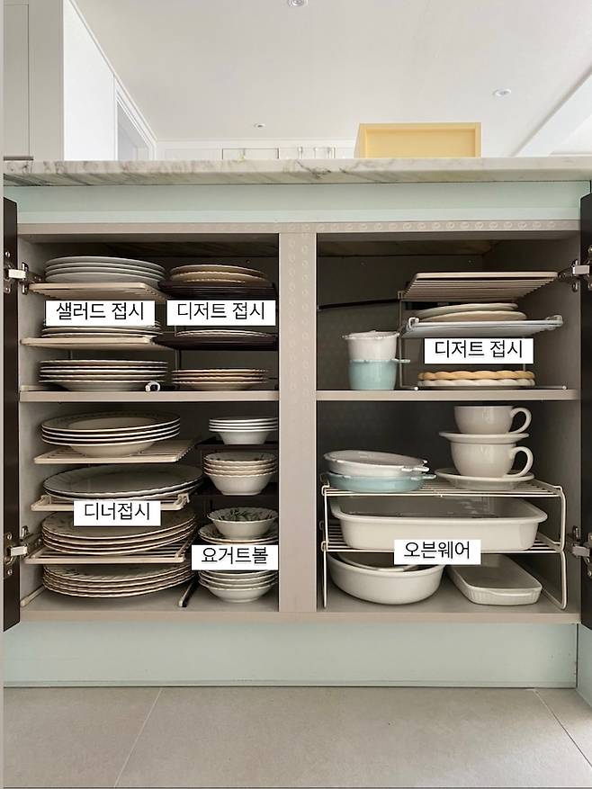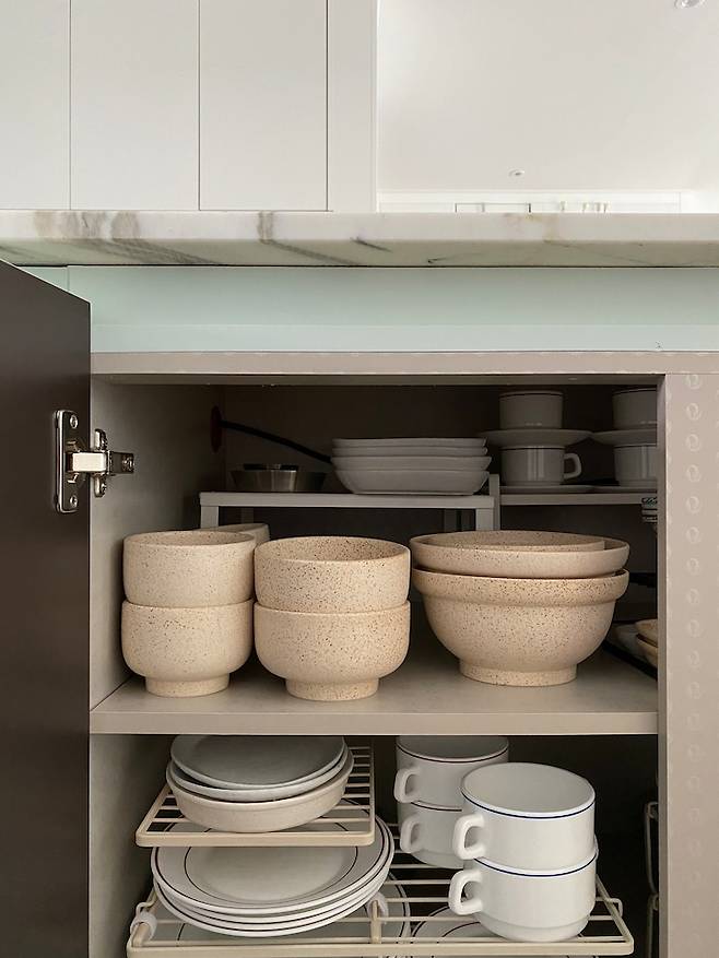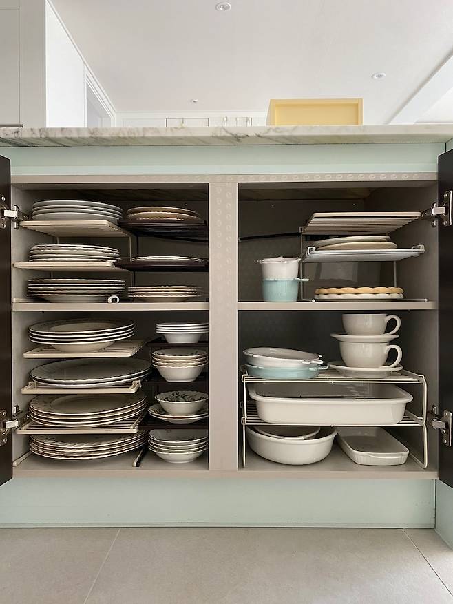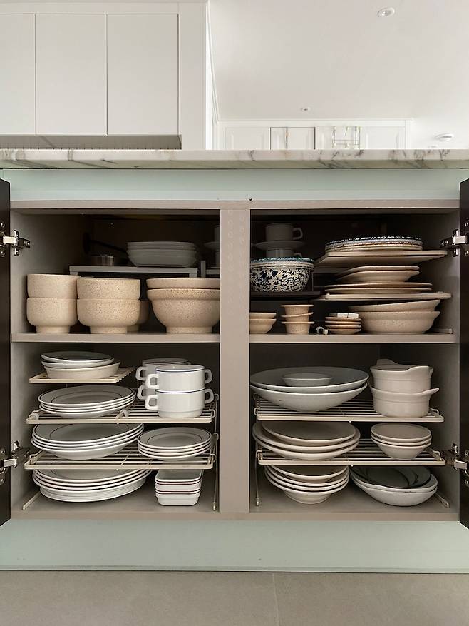 저의 접시 정리 포인트는 필요한 접시를 꺼낼 때 손이 두 번 이상 가지 않도록 하는 거예요.