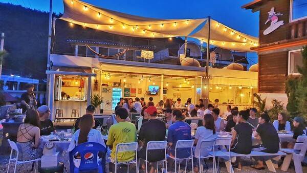저녁에는 총 2부로 나누어져 파티를 여는데요. 1인당 45,000원이며 1부는 고기와 소주가 무제한으로 나오고, 2부에는 생맥과 모히또 무제한 펍파티가 열리는 곳입니다. 술과 서핑을 좋아하신다면 이곳에서 특별한 밤을 보내보시기 바랍니다.