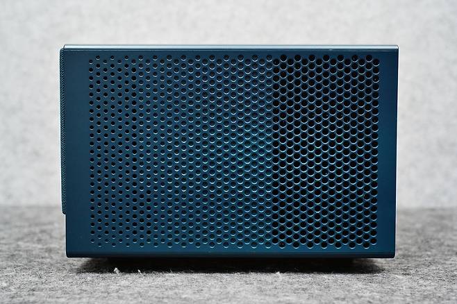 외형적으로는 군더더기 없는 사각형 디자인과 열기 배출을 위한 측면의 에어홀은 내부 온도 상승을 효율적으로 관리하는 동시에 작동 중 발생하는 팬소음도 생각보다 정숙한 편이라 야간에 조용한 환경에서도 콘텐츠 감상에 큰 지장을 주지 않았으며 특히 침실이나 소형 룸에서도 사용이 가능하다는 점에서도 장점입니다.