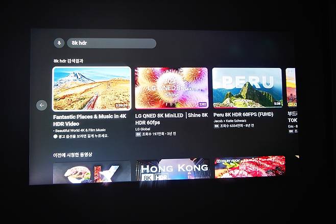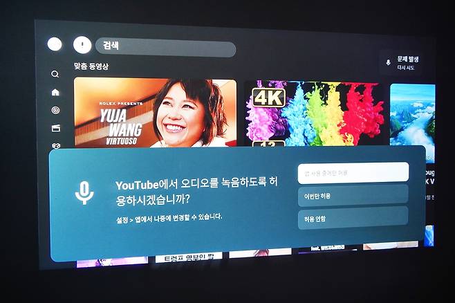 편리한 세팅은 물론이고 유튜브에서 보고 싶은 영상을 검색 할 때에도 구글TV 내장되어 있는 기능 중 음성인식도 지원하기 때문에 불편한 타이핑 없이 빠른 검색도 가능했습니다.