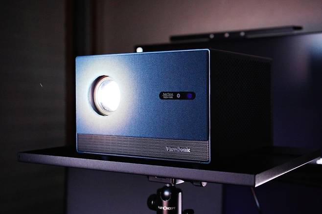 고정된 스크린이 없는 환경에서도 벽이나 천으로 충분히 대체할 수 있을 만큼 기본 투사 품질이 양호하며, 전체 해상도가 FHD이기 때문에 글자가 포함된 콘텐츠나 회의용 화면에서도 디테일한 표현력이 떨어지지 않고 색감 밸런스도 무난한 수준으로 유지됩니다.