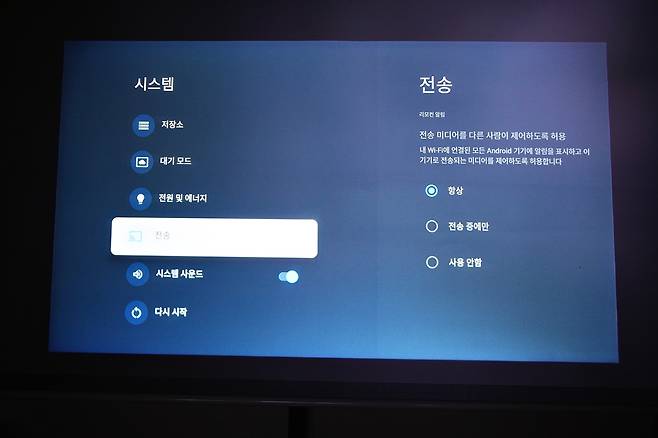 당연히 스마트폰과의 무선 미러링도 가능해서, 핸드폰에서 보고 있는 화면을 바로 전송하여 재생이 가능해 활용도가 상당히 높습니다.