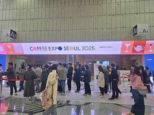 그런 가운데 지난 2일, 코엑스와 한국커피연합회가 주최하는 '2025 서울커피엑스포'가 삼성동 코엑스 A, B홀에서 개막해 둘러봤다. 코엑스를 방문한 시간이 오후 12시 무렵이었는데 행사장 입구는 입장하려는 사람들이 100여 미터 넘게 줄을 서있다. 이것만 봐도 그 인기를 짐작하고도 남는다.