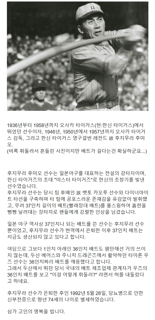 일본 야구 역사상 유일하게 37인치 길이의 배트를 사용한 야구선수
