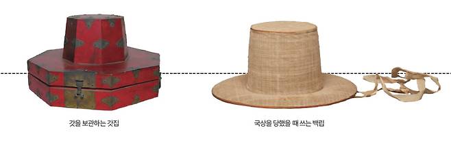 갓 외에도 사모, 정자관, 익선관, 전립, 패랭이, 주립 등 다양합니다. 개항기에 조선에 왔다 간 서양인들의 기록을 보면 조선사람들의 다양한 모자를 보고 놀라워하며 조선을 ‘모자의 나라’라고 평했습니다.