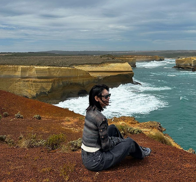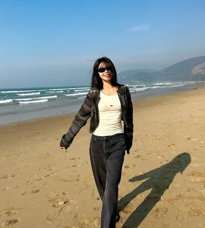 또 다른 사진 속 수영 님은 블랙 크롭 니트 가디건에 흑청바지, 그리고 선글라스를 착용해 편안하면서도 멋스러운 여행 패션을 보여줬어요.