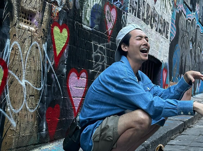 배우 정경호 님은 화이트 볼캡, 데님 셔츠, 블랙 크로스백, 흰색 스니커즈 등 베이직한 아이템을 매치해 꾸안꾸 남친룩을 보여줬어요.