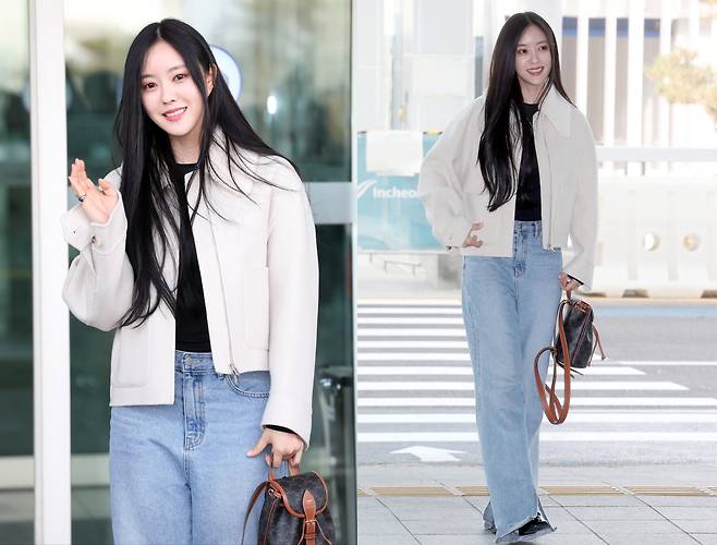 효민처럼 와이드한 데님이나, 모델처럼 원피스와 코디해도 넘 예쁘죠?