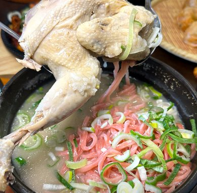 ▶ 매일 아침 직접 우려낸 닭육수로 국물이 진하면서도 느끼하지 않습니다.