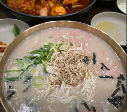 든든하면서도 부담 없는 한 끼가 생각날 때 자연스럽게 떠오르는 메뉴가 닭칼국수입니다. 꾸덕하고 고소한 국물에 쫄깃한 면, 여기에 닭강정과 떡볶이까지 함께 즐길 수 있어 가격 대비 만족도가 높았습니다. 한 그릇으로 배부르게 먹고 싶을 때 잘 어울리는 구성입니다