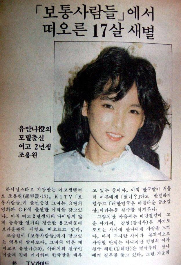 1981년, 미스 롯데 선발대회에서 인기상을 받으며 데뷔한 조용원은 단숨에 하이틴 스타로 떠올랐다.