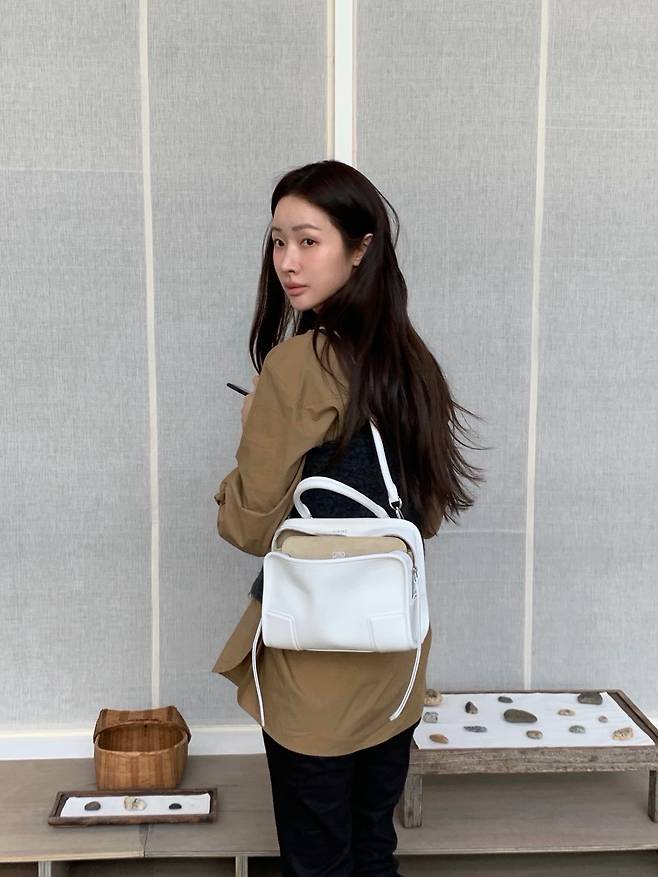 특히 손에 든 깨끗한 화이트 가죽 백은 전체적으로 차분한 톤의 코디에 화사한 생동감을 불어넣으며, 그녀만의 탁월한 패션 센스를 완성하는 영리한 포인트가 됩니다.