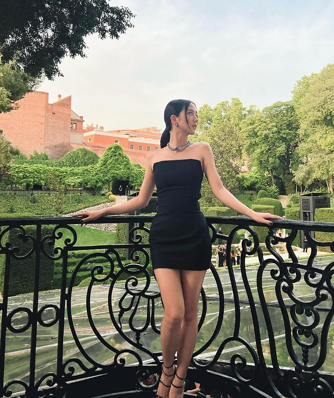 지수는 슬림핏 블랙 드레스를 세련되고 고급스럽게 소화해냈답니다.