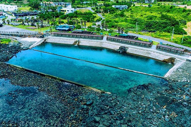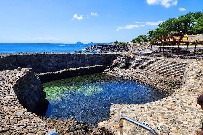 서귀포 예래동에 위치한 논짓물은 현지인들이 자주 찾는 조용한 물놀이 장소입니다. 바다와 연결된 이곳은 자연적으로 형성된 풀장처럼 물이 고여 있어 안전하게 물놀이를 즐길 수 있습니다.