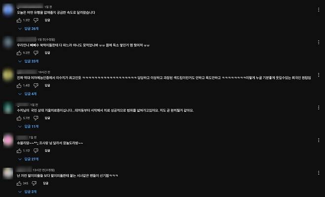 “오늘은 어떤 유행을 없애주실지 기대하며 왔다”, “우리 언니는 빼빼수 팔느라 고생했을 듯” 등의 댓글이 이어졌으며, "역대 여자 예능인 중 이수지가 최고"라는 찬사도 있었습니다.