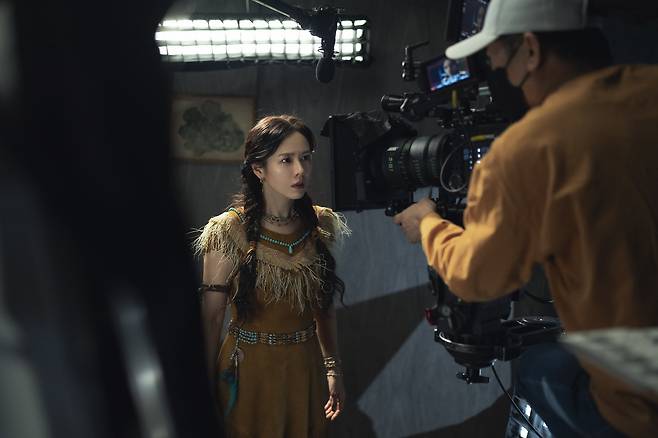 이 장면을 위해 포카혼타스로 분장한 손예진의 모습이 이채롭다. 앞서 베니스 국제영화제 레드카펫 위에서 우아한 매력을 뽐낸 모습과도 대비된다.