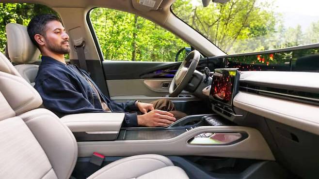 이번 모델에서 가장 눈에 띄는 부분은 실내 구성이다. 48인치 일체형 파노라마 디스플레이가 기본 적용되며, 시각적 경험을 크게 확장했다.