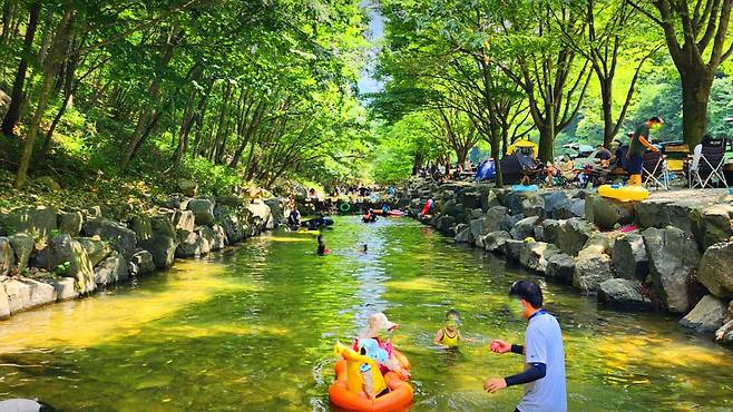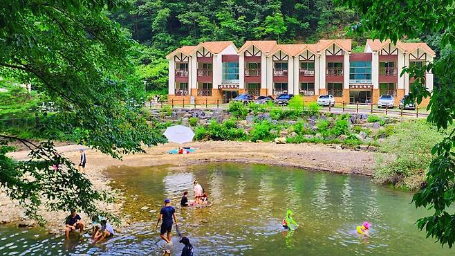 통나무 숙소와 캠핑장, 나무 그늘 아래 펼쳐진 맨발 산책로와 계곡이 조화를 이루는 이곳은, 자연과 함께 하루를 온전히 보내고 싶은 이들에게 완벽한 선택이다.