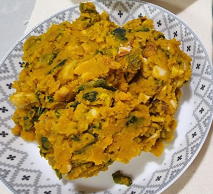 ✅ 으깬 호박에 다진 견과류를 넣고 잘 섞어줍니다.