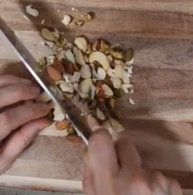 ✅ 집에 있는 견과류를 칼로 대충 다져줍니다.