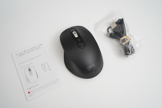 설명서는 한글, 칼라로 되어 있어 쉽고 빠르게 기능 습득을 할 수 있으며 동봉된 케이블은 USB-A ,다른 한 쪽은 C타입 케이블 형태입니다. 참고로 유선연결은 지원하지 않으며 케이블은 충전용으로만 사용이 됩니다. (Spec에는 유선연결 시 1000HZ 폴링레이트 작동으로 되어 있는데 오기인 것 같네요)