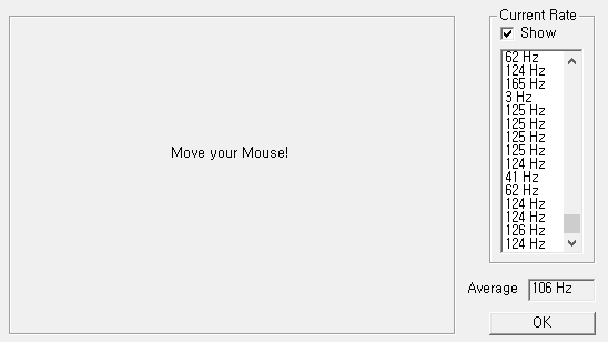 동글연결 시 폴링레이트는 125Hz를 보여주고 있습니다.