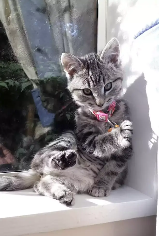 캣냅카페는 "베아는 소뇌 형성 부전이라는 신경학적 상태를 가지고 있어 걸을 때 휘청휘청 대는 듯 몸이 제 마음대로 움직여지지 않습니다."라고 썼습니다. "하지만 베아는 그것을 정말로 모르는 듯 해요!"