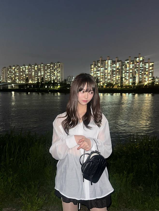 시스루 화이트 셔츠와 블랙 스커트 조합은 언제나 실패 없는 캐주얼 꾸안꾸 셋업!