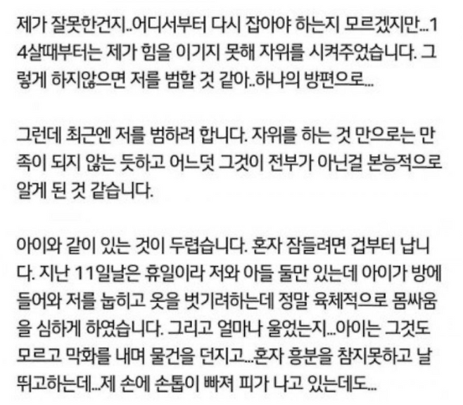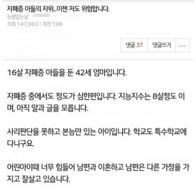 16살 자폐증 아들울 둔 42세 엄마입니다