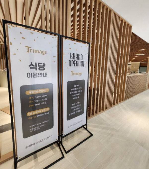 트리마제 순천의 식음 서비스 제공사는 신세계푸드다. 평일은 중석식, 주말은 조중식까지만 제공한다. 정기 휴무일은 월요일이다. 식사는 일반식과 간편식 중에서 선택 가능하다. 일반식으로는 파채간장불고기, 열무보리비빔밥 등 정식이 나오고, 간편식으로는 치킨콥샐러드, 에그마요샐러드, 카츠 샌드위치 등이 나온다.