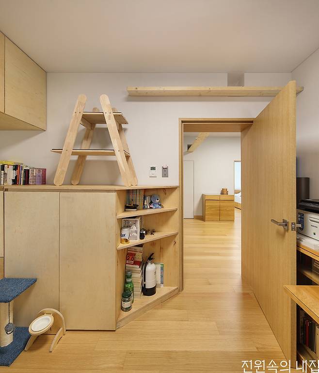 사람을 위해 채우고, 고양이를 위한 캣워크까지 화룡점정으로 더하며 완성된 감나무집. 지영씨와 식구들은 주택의 적응기를 보내고 있다. 주택에 살고자 한다면 가장 중요한 것은 ‘왜 주택에 꼭 살아야 하는가’를 스스로 명확히 하는 것이 중요하다는 지영씨의 조언에 맞게, 감나무집은 고쳐진 구석구석 스스로 그 이유를 피워내고 있다.