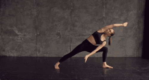 매트에 서서 다리를 넓게 벌린 후, 왼발을 왼쪽으로 틀어줍니다. 상체를 왼쪽으로 기울이며 왼손을 바닥으로 내리고 동시에 오른손을 천장 쪽으로 뻗습니다. 이어서 오른손을 내리고 왼손을 올리며 반대 방향으로 진행합니다. 동작을 반복한 후, 다리 위치를 바꿔 같은 방식으로 운동합니다.