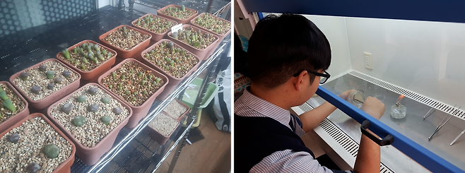 관련 기술을 개발해 특허까지 등록했다. “조직 배양을 할 때 배지(세포·식물 등을 증식시키기 위한 액체·젤 형태의 영양원)를 무균 상태로 유지하는 일이 정말 중요합니다. 배양실에 들어갈 때 하얀 무균복을 머리부터 발끝까지 덮어써야 할 정도로 민감하죠. 저희 기술의 집약체는 배지에 넣는 첨가물, 일명 ‘PDS’라는 물질입니다. 배지 1L에 PDS를 1mL만 넣어도 식물에겐 해를 주지 않으면서 세균·곰팡이를 원천적으로 억제할 수 있습니다. 일반 사무실이나 교실, 심지어는 야외에서도 조직 배양을 할 수 있게 된 겁니다.”