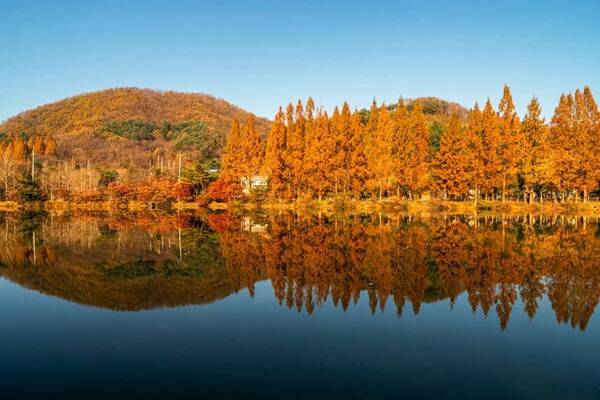 특히 저수지 주변에 심어진 메타세콰이어 나무들이 만들어내는 풍경이 아름답기로 유명합니다. 봄에는 신록의 푸르름을, 가을에는 단풍의 붉은 빛을 감상할 수 있어 계절마다 다른 매력을 느낄 수 있습니다.