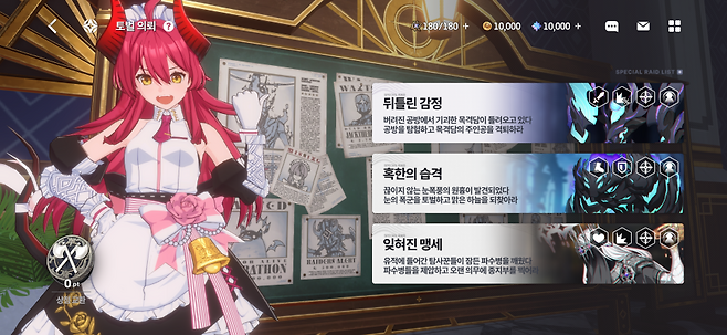 '스타세이비어'는 놀랍게도 이런 요소들을 한 곳에 다 묶은 작품입니다.먼저 메인스토리는 블루 아카이브나 프린세스 커넥트: 리다이브처럼 스테이지를 일정 수치 이상 밀고 나면 따로 감상할 수 있도록 마련됐습니다. 스테이지를 미는 방식은 그간 보았던 모바일 턴제 RPG와 유사하게 4인 팀을 편성한 뒤 웨이브를 클리어하는 방식이었죠. 그리고 이 팀에 편성할 캐릭터 레벨 업과 스킬 레벨 업 재화는 방치형식 보급과 유저들에게 친숙한 던전 파밍으로 얻을 수 있습니다.
