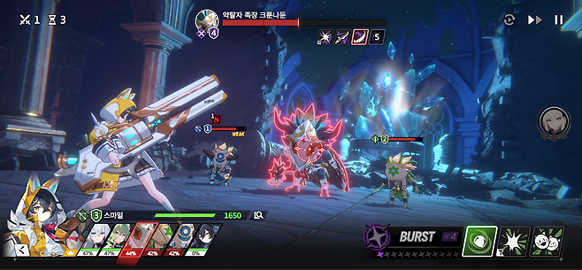 이외에도 공격을 하거나, 적에게 타격을 받으면 버스트 게이지가 충전됩니다. 그 게이지가 일정 수치 이상 모이면 '노바버스트'를 발동, 스킬을 강화해서 쓸 수 있죠. 일반 공격과 특수기, 궁극기 모두 대상에 포함되며, 캐릭터마다 노바버스트 효과가 잘 받는 스킬 종류가 다르니 이를 확인해서 전략적으로 이용할 필요가 있었습니다. 대체로 궁극기는 쿨타임이 5턴 이상으로 긴 편이고, 캐릭터에 따라 특수기 쿨이 4턴 이상인 경우도 있어 어느 타이밍에 이를 쓰느냐 혹은 무엇을 강화해서 쓰느냐에 따라 효율이 갈릴 수밖에 없었기 때문이죠.
